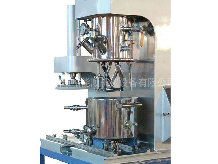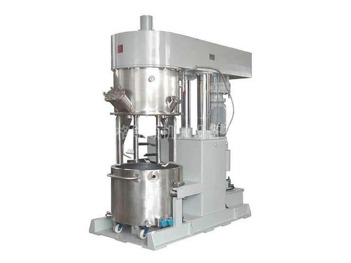 由攪拌桶、攪拌蓋、攪拌動力頭(含兩組低速攪拌槳、兩組高速分散器及一組刮壁槳)、溫控裝置、升降裝置、鎖桶裝置及控制系統(tǒng)等組成。