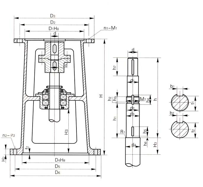 本機架系列的JXLD型適用于與XLD型擺線針傫行星減速機聯(lián)接,JBLD型適用于與BLD型擺線減速機相連接。為使攪拌軸與軸承室裝配,維修方便,同時對BLD2、BLD3、BLD4與相配的機架JBLD2、JBLD3、JBLD4的軸承室加大,使之與較粗的攪拌軸相一致。