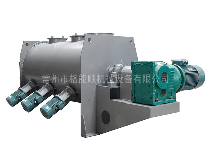 犁刀混合機(jī)由傳動(dòng)機(jī)構(gòu)、臥式筒體、犁刀、飛刀四部分組成。物料在犁刀作用下沿筒壁作對(duì)流運(yùn)動(dòng),當(dāng)物料流經(jīng)飛刀時(shí)被高速旋轉(zhuǎn)的飛刀拋灑,從而在短時(shí)間內(nèi)達(dá)到均勻混合,能滿足大多固液混合以及造濕粒、干燥等復(fù)合工藝。